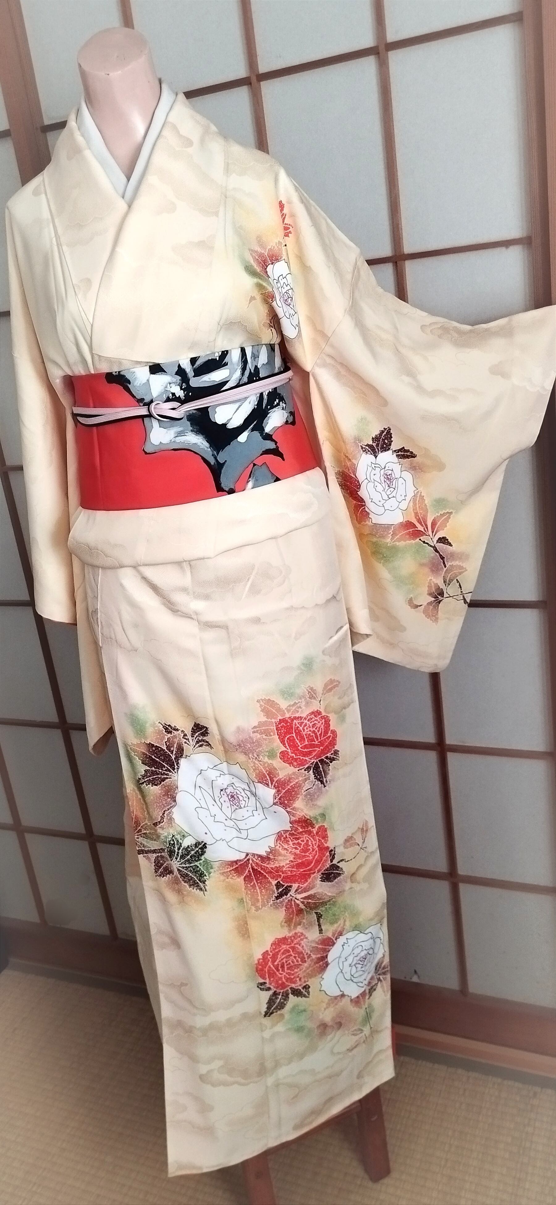 薔薇の香りが漂って来そうな大輪の薔薇の訪問着です。